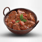 Balti GoshtTender beef spices semi dried sauce roasted with onions, tomatoes, capsicum. A traditional Pakistani Hot curry