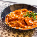 Butter ChickenMarinated boneless chicken fillets cooked in a tandoor and mixed with creamy tomato sauce